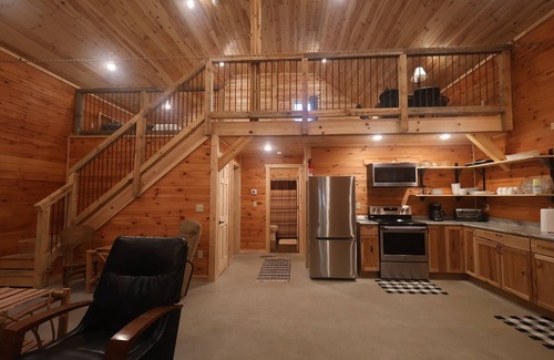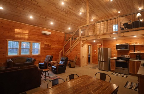 Come enjoy the beautiful outdoors. New cabin in 2021! Nice open floor plan with a loft. 1,200 square feet. Sleeps 10+. Its located on snowmobile trails.