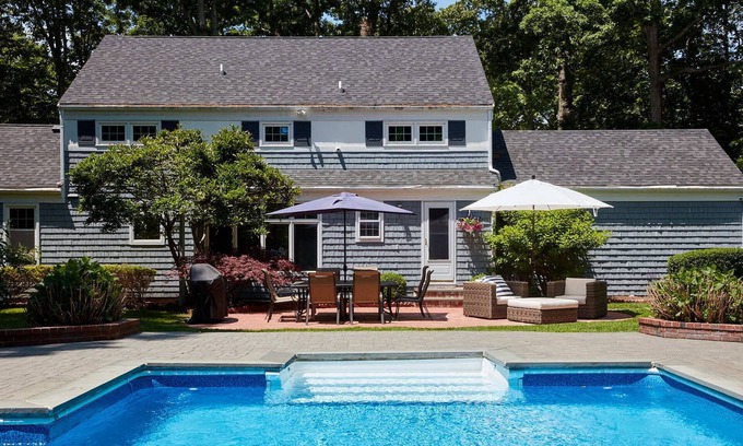 Best-rates for the East Shoreham house starts from $898 per night with includes Child Friendly, Internet, Kitchen, Laundry, Air Conditioner, Pool, Security/Safety, Bedding/Linens, Wellness Facilities, Fireplace/Heating With all other amenities. Float Homes offers a wide range of floating homes, houseboats, and water chalets, ensuring each traveler finds their ideal water escape, whether planning a water getaway, a family vacation, or a pet-friendly retreat with the whole group.