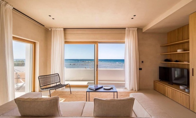 The apartment has: custom-made furnishings; a bedroom with a double bed and a very comfortable sofa bed in the living room; direct access to the private beach with 2 sun loungers and a beach umbrella included in the price of the apartment; private roof; and offers various extra services such as: private chef; boat excursions, Beauty treatments.
