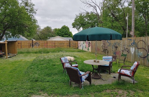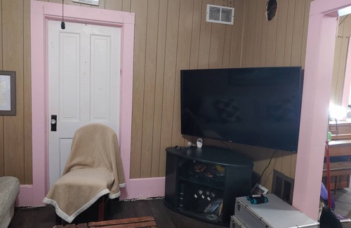 Built in 1880, this home has unique vintage charm. Main floor includes living room, dining room with library, kitchen, laundry room, and bathroom. Living room has 56" smart tv connected to Netflix, Vudu, Disney+. Laundry room/Mudroom has washer and dryer and hooks for hanging jackets or bags. Owner's room and private room are on the second floor. Large fenced-in backyard with patio table and firepit. WiFi available.