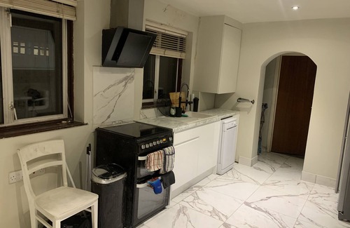 Private room to rent in the centre of Walthamstow Market. The Ground floor has a jet tub, an open kitchen and a king-size bed. (Room key is provided in for security).