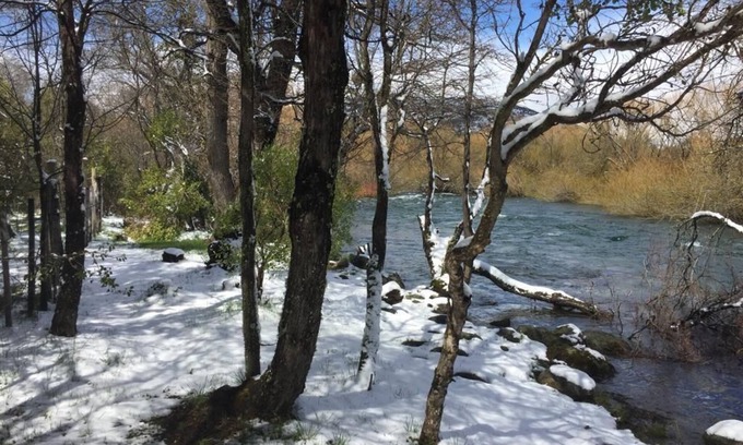 La cabaña esta rodeada de arboles, junto a un arroyo. Con acceso al rio Quilquihue, apto para ingresar al agua, con costa rocosa.