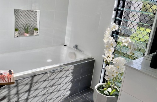 Modern no smoking property surrounded by local rainforest and stunning hill views. This knew stylish air con private bedroom with own ensuite. (I also have an adjoining queen bedroom for couples etc travelling together at an extra cost) Kitchen & laundry facilities available. Large outdoor area with pool & bbq. 1 cat lives here! No food or alcohol to be consumed in either bedroom however we do have a large patio for your enjoyment. Min stay 1 night Max 4 nights.