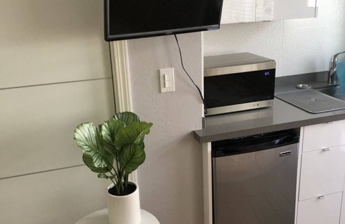 This is a private contemporary studio for rent in a beautiful safe neighborhood... fully furnished with kitchenette, fridge and microwave. Perfect for people visiting from out of town or commuting for work...