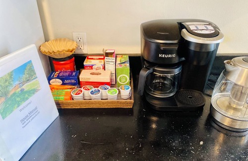 This studio has a full kitchen with all the cooking utensils you'll need to make a Thanksgiving dinner (if you wanted to). An air fryer is provided and I politely ask that any heavy frying to be in the air fryer as not to trigger the smoke alarm. There's also a Keurig coffee maker with k-cups, electric kettle, and drink ware. Please load the dishwasher and start it before checkout.
