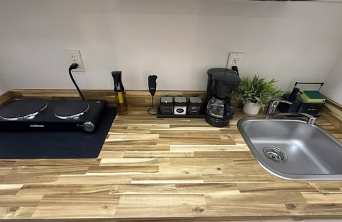 Relax in this private suite featuring a private entrance, bathroom, and kitchenette.