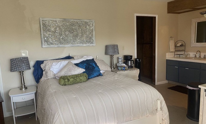 Detached spacious suite with Private enterance including private bathroom with walk in shower. Keyless entry. Mini fridge, coffee bar, micro. Close to town with many boutiques, antique stores and wonderful resturants.