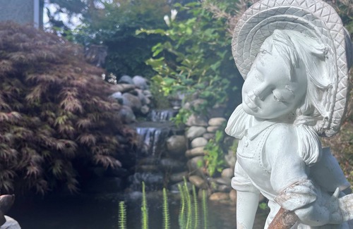 In the backyard, you'll find a private hot tub, a small waterfall, and a pink acacia “happiness tree,” providing a peaceful spot to relax or enjoy a barbecue. The suite can be arranged for families, couples, or business travelers, and we’re happy to discuss discounts for longer stays. Please note the backyard is fenced and is shared with your host upstairs, who is usually hard at work tending to the gardens in the back and the our resident Koi pond under your private waterfall!
