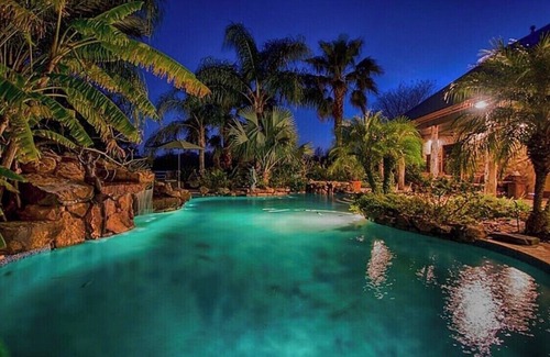 Our outdoor paradise features a Saltwater pool, waterfalls, mermaids, a hot tub, a surround sound system in the pool and patio, an outdoor kitchen, an air-conditioned bathroom, and a separate outdoor shower for your guests. There's no curfew, and we're family, party, and business-friendly. Pets are welcome. You can have up to 8 additional guests visit during your stay at no extra charge, making a total of 20 people, including the 12 staying in the Bunkhouse. Parties over 20 people (including the 12 for the booking) will need to be approved by the hosts, and additional fees will have to be paid for each additional person. We also offer to cook/cater for a small fee.