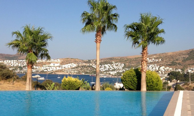 located in luxury compound, in Gundogan, Bodrum, close to Gundogan centre, and only 1 min walking to the sea/ pier, our compound is beautifully located. There are only 12 villas in our compound, and most villas have their own private pool in their gardens, so our compound pool (on the photos) becomes like private. our villa is very spacious , 645 m2, 4 rooms, 3 bathrooms, with big garden and terrace. Gundogan is between Turkbuku and Yalıkavak, is considered to be the best location in Bodrum. have an amazing holiday!