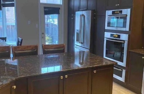 Beside have a beautiful kitchen with a lot of cabinet, very big fridge, build in wall oven, huge counter top with pendant light and pot light, so nice and bright.