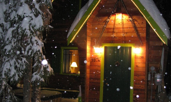 The Stellar J is everything you imagine a ski holiday chalet should be... Private stand alone ski in/out cabin with 6 person hot tub, situated within 2 minutes walk of the Village center, yet set in the quiet privacy and seclusion of towering snow-laden trees. Heated secure entry for your gear and outer clothing, Gas fireplace, 2 privacy bedrooms and all the modern conveniences to make for the finest of ski vacations.