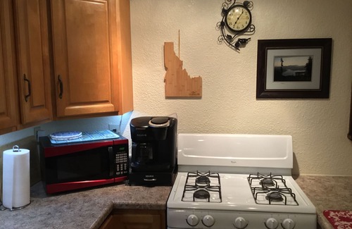 There is an apartment-sized washer and dryer with laundry pods and dryer sheets, a microwave and toaster, a fully-stocked kitchen including dishes, pots/pans, and a stove/oven. Spices, oils, salt and pepper, etc. are in the cupboard for you. There is a regular coffee pot and Keurig with a variety of drink pods included!