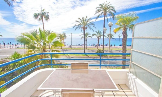Spacious 100-square-meter apartment located in a serene residential building in a prime location on Promenade des Anglais. It comprises two bedrooms, making it perfect for two couples or a family with children seeking the ideal coastal getaway. The apartment is fully equipped with all the necessary amenities to ensure your stay is comfortable and convenient. The apartment includes a very roomy living room with a large TV and free Wi-Fi, as well as a dining area for enjoying meals with family or friends. The sea view from the balcony and the beachfront location make this apartment an ideal place to savor the beauty of Nice and the Mediterranean.