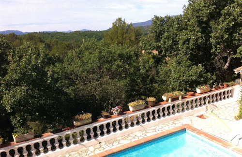 villa comfortable, quiet and not overlooked, built atop a hill on ground of 9000m² in terraces in the middle of oaks and pines.