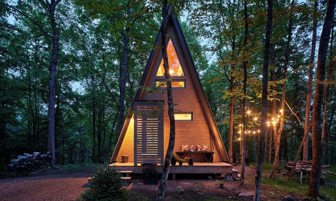 This mini A-Frame cottage located just a little over one hour from Ottawa, is nestled in 75 acres of forest with lake access (shared with 3 other cottages) and is perfect for couple seeking a romantic getaway. Top-of-the-line experience with all amenities, including a private cedar hot tub, wood stove, and in-floor radiant heating, it’ll be difficult to top this wonder, thanks to its reclusive location, amazing views of the forest,and beautifully designed interior. Kick back and relax in this calm, stylish space!
