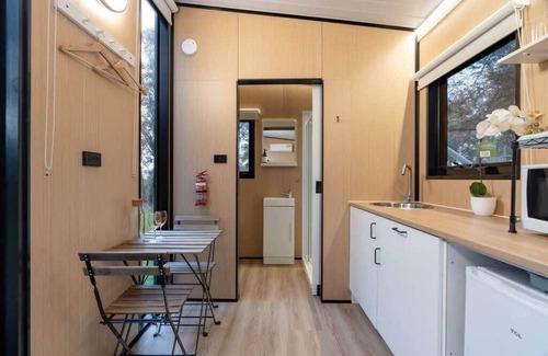 Gumbuya World Rides, Maru Koala and Animal Park, and Civic Park are just a few of the nearby attractions in the area. A cozy 139-square-foot tiny home with easy access to water, split air conditioning, a kitchenette, cooking equipment, and excellent bathroom facilities. This includes a cassette toilet with a removable waste-holding tank, hand basin, and shower (gas-heated for hot showers).