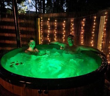 BathroomBathtub or shower, Shower, Toilet paper, Towels, Private bathroom, HairdryerMedia & TechnologyTV, Flat-screen TV, Satellite channelsGeneralIron, Air conditioning, Fire extinguisher, Heating, Trash cans, Carbon monoxide detectorActivitiesHot tubKitchenDining table, Refrigerator, Dishwasher, Kitchenette, Coffee machine, Stovetop, Wine glasses, Electric kettle, KitchenwareLiving AreaFireplace, Dining areaViewGarden view, ViewBedroomWardrobe or closet, LinensOutdoorsOutdoor furniture, Terrace, Outdoor dining area, BarbecueBuilding CharacteristicsDetachedRoom AmenitiesSofa bed, Clothes rackEntertainment & Family ServicesBoard games/puzzles, Books, DVDs or music for children |