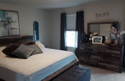 Enjoy your morning in our beautiful sun room and/or our outdoor patio. A wide variety of coffee and tea will be provided. Bagels, cream cheese, eggs, oatmeal, breakfast bars, muffins and sticky buns will also be left in our large open kitchen so your family may enjoy a light breakfast. For your convenience, paper products will be offered as a kitchen option to save time with dishes. All bedding and towels with be provided with your stay. If you forget bath soaps or shampoos, those will be available in the main bath cabinet. Large finished basement offers a family room with large sectional couch, a ping pong table and an awesome home gym (bedroom 5 as well) with an adjoining 4th half bath. Gym offers a large wall mirror professionally installed, dumbbells up to 35 lbs, kettle bells, bosu ball, stability balls, bands, ballet bar, a SOLE Treadmill and a Rogue bike. The garage also has a Stairmaster step mill. The gym room is a legal 5th bedroom with full window, double doors and adjoining 4th half bath. There is plenty of floor space to use the double air mattress and bedding provided. Two twin air mattresses will also be available for extra sleeping in the basement and/or the 4th bedroom upstairs. Help yourself to the basement chest full of games for children and even some scrabble for the adults. The back yard offers tether ball and a fire pit (wood not provided). Cornhole and ladder ball can be located in the garage for additional back yard games. Fire extinguisher and first aid kit are located on top of the refrigerator. Cable TV offered in the main living room, basement, the master bedroom and double bedroom. Free wifi. New Giant grocery opened right across the street. Weis market, Walmart and Sams club are all under a 10 minute drive. Please contact me with any questions.