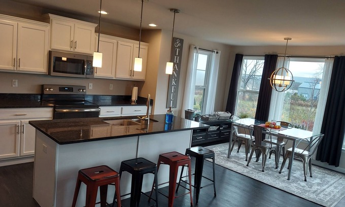 New! Prime location for Penn State football! 7 miles to Beaver stadium. Free light breakfast provided. Home gym. All linens included. Dunkin Donuts .5 miles outside our quiet neighborhood with playground and basketball court. Unlimited free parking. Conveniently located just 2 miles off I99 for quick access to Penn State campus and local sports facilities. Enjoy downtown State College just 6.5 miles away and downtown Historic Bellefonte only 2 miles down the road. Backyard tether ball! New Giant grocery store right across from neighborhood.