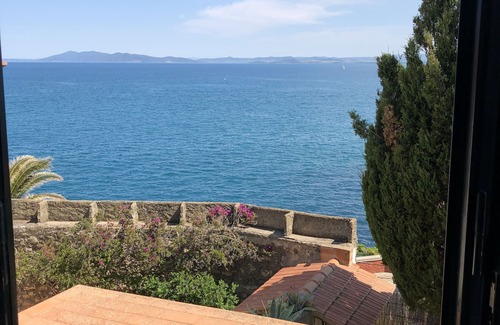 The garden ends in a sun terrace with an amazing view overlooking the fishing village of Porto Santo Stefano and wonderful for enjoying the sunset. From there it is accessed via a staircase on the rocks, ideal for diving and fishing, not suitable for young children.