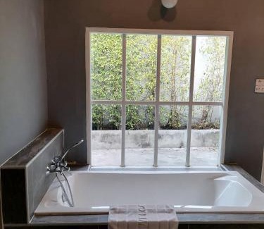 BathroomToothbrush, Hairdryer, Towels, Conditioner, Shower cap, Toilet paper, Private bathroom, Shampoo, Slippers, Body soap, Shower, Toilet, BathtubGeneralTile/Marble floor, Air conditioning, SafeKitchenRefrigeratorLiving AreaSitting area, DeskOutdoorsPatioMedia & TechnologyFlat-screen TV, Satellite channelsBedroomWardrobe or closet, LinensViewGarden viewAccessibilityEntire unit located on ground floorRoom AmenitiesClothes rackPool and SpaPool towelsFood & DrinkBottle of waterPhysical distancingSingle-room AC for guest accommodation |