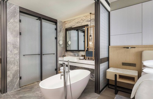 Qingdao Marriott Hotel Jiaozhou offers 272 air-conditioned accommodations with minibars and laptop-compatible safes. Beds feature down comforters. 55-inch LCD televisions come with cable channels. Bathrooms include bathrobes, slippers, complimentary toiletries, and hair dryers.