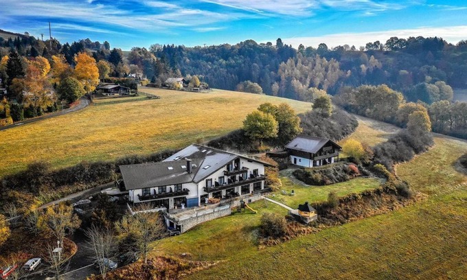 Host of the regional brand EIFEL The Landhaus Müllenborn also enchants you with its unique panoramic view over the Eifel. Feel the nature, relax with the help of our feel-good arrangements, seduce your taste buds, move your meeting without further ado into the green or simply enjoy a harmonious time. The house has a large sun terrace and wellness oasis and the Eifelsteig is only 300 meters away.