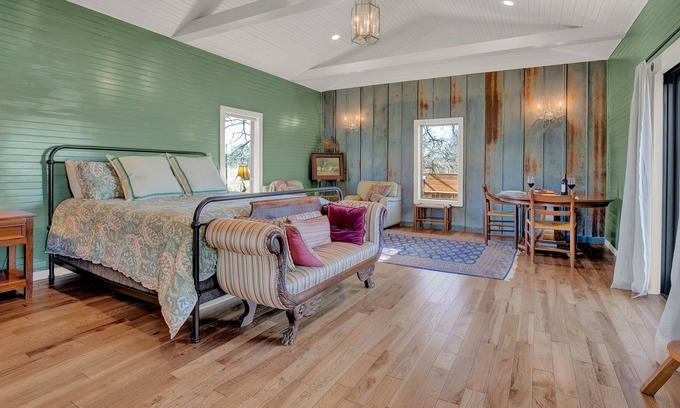 Then, at the end of the night, when bedtime beckons, the Albert Cabin’s bedroom offers hotel-quality luxurious bedding and the latest in mattress technology that provides an exceptional night of restorative sleep. Lay your head back and let yourself drift off to sleep, in preparation for yet another great day in Texas Wine Country!