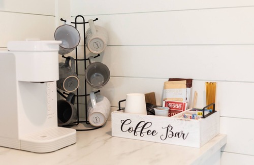 Our cozy studio is situated above a detached garage. However, the rental does NOT INCLUDE ACCESS TO THE DOWNSTAIRS GARAGE for anything other than the use of laundry. Parking inside the garage or storage is not included with the nightly fee. You will have access to a designated parking space that can easily accommodate two vehicles. The Kitchenette is fully stocked with a mini fridge, Keurig coffee maker, kettle, and microwave that can also function as an air fryer, broiler, and heating unit. NO STOVE. Whip up a quick snack or light meal to enjoy at the breakfast nook or take it to-go and explore the town!
