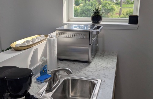This newly renovated one-bedroom basement unit offers everything you need for a relaxing stay. With a private entrance, a cozy bedroom with a king-sized bed, a modern bathroom with a soaking tub, and a fully stocked kitchenette, you're sure to enjoy your stay.