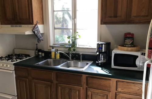 Located just 1 mile from UF, this entirely separate mother-in-law will meet all of your needs. Houses two bedrooms (a queen bed and two twins - one is a trundle), living/dining room, full kitchen, and a bath. It is important to note that the second bedroom opens to the kitchen and bathroom and is not entirely private. Laundry available. All needed materials will be provided. We are happy to accommodate families and can provide lots of the needed goods. Parking available for 2 cars.