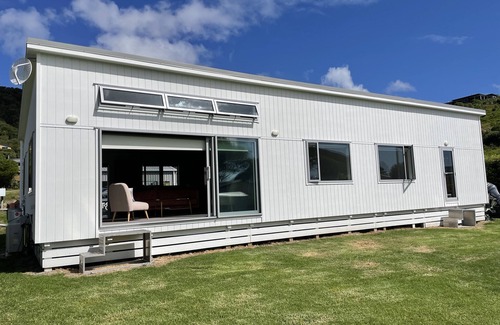 Brand new bach located in Mahia. Centrally located - 500m walk to the beach and local store. Peaceful location amongst other baches with a gorgeous outlook to Mokotahi Hill. Quality furnishings throughout.