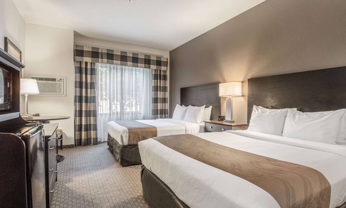 Quality Inn offers 168 accommodations with coffee/tea makers and hair dryers. Beds feature pillowtop mattresses. Premium cable television is provided. Bathrooms include bathtubs or showers and complimentary toiletries.