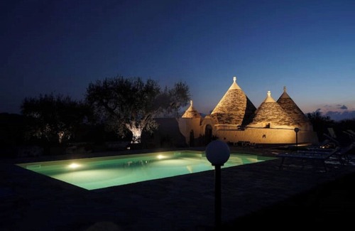 Charming complex consisting of four stone trulli with private pool, garden with lawn and in the shade of olive trees, completely renovated in 2021 immersed in the Apulian countryside. The complex is equipped with all amenities. Our trulli consist of a kitchen/ living room, a double bedroom, a twin room with the possibility to turn it into a double bed, a single bedroom and two bathrooms with shower.