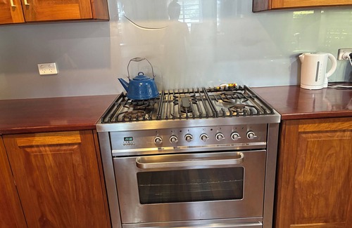 Own entrance with code. Upstairs of a traditional Queenslander apartment with Tasey oak timber floors and rosewood timber spacious kitchen with all the pots and pans to make a lovely meal . Both bedrooms have king size beds. King bedroom is spacious with a sofa bed for a extra two people. T.V and a spa bath for two. Queen bedroom has mountain view, double doors to the deck ,own bathroom and plenty of room.