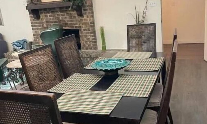 4 bedrooms with queen beds are provided along with 3 full bathrooms! There is a 32" UHD 4k TV in each bedroom along with a 60" UHD TV in the main living area. There is also an inflatable queen mattress available for extra guests, two dining areas with seating for 10, and a large, fully stocked kitchen with a full-sized fridge, microwave, coffee, and Keurig machines stove/oven, and plenty of counter space. A washer and dryer area is also available inside the home. A double garage is also accessible. The backyard is fully enclosed, privacy fenced, and secured with a patio and table with outdoor seating. Perfect for pets and families with kids.