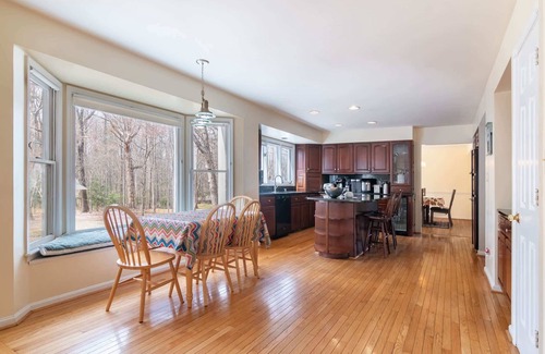Enjoy peaceful mealtimes with wooded views through the bay window—perfect for morning coffee or a quiet dinner.