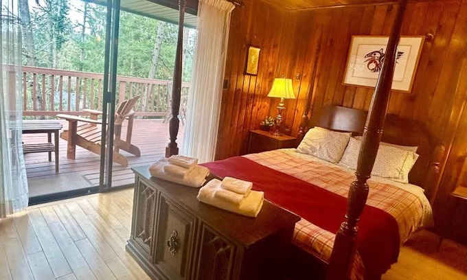 Best place to relax. Charming room in a rustic house. Possibility to add breakfast, raclette dinner, e-bike rental, massage, swim-SPA and Sauna. This adorable property features a queen bed with orthoputic mattress for your sore back.... lots of different pillows to make sure that one will fit your neck perfectly. Huge deck with swing chairs. Guests can enjoy amenities like WiFi, iron, and a hair dryer. There are 2 rentals rooms in the house, the bathroom is shared only if the other room is rent.... if not, it's all yours. Fall in love with Nanoose Bay and enjoy the magic it has to offer... 5 min walk to the beach.... 3 min drive to the park.... 25 minutes from BC Ferry. You will want to come back.
