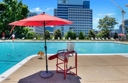 Tysons corner is nearby and Washington, DC is a 25 min from the unit. There is a large pool that will open after labor day. There is a kiddie pool, playground and walking trail in the back of the building.