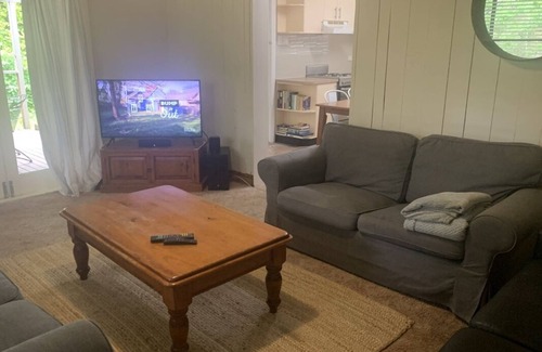 Quiet cabin surrounded by dense foliage for privacy , can be a quick getaway for families or friends you can enjoy peace and quiet with our 2 queen bedrooms both having brand new split system and tv / dvds in both rooms, new bathroom and a second toilet , double bunk beds are shared with a laundry area off the kitchen , the kitchen has a split system and is shared with a family room that has a wood fire , our cabin is close to all facilities , 5 min walk to golf club and parks , bbq facilities, and an outside dining on private verandah. Linen is supplied all beds are made .