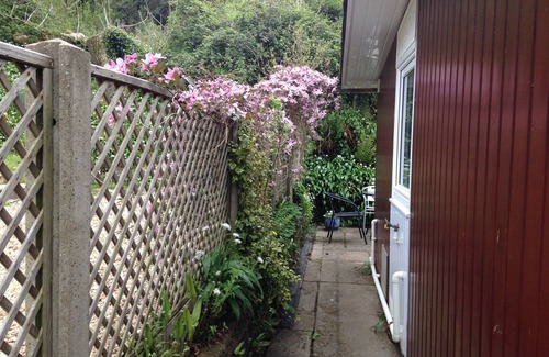 Dogs are welcome, on request and the chalet is one of the few on the site with a private garden, which can be dog secure. If you want to bring a dog, you need to let us know the breed. Cost is £25. The garden backs onto woodland, which is full of birdsong and wildlife.
