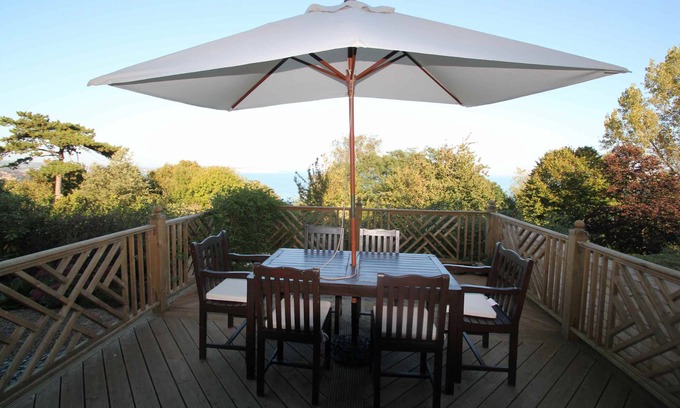 Ocean deck is a quality ground floor apartment within a former Victorian priory. Set in two acres of woodland gardens it has panoramic sea views from its own secluded decking.