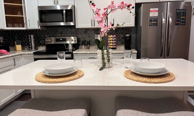 Step into the inviting, light-filled space that awaits you. Sink into the comfy sofa, admire the modern décor, and enjoy the convenience of a coffee table and smart TV. This living room is your sanctuary to relax after a day of Dallas adventures. Located in the medical district, you're just minutes away from UT Southwestern, Children's Medical Center, Parkland, and William P. Clements Jr. University Hospital. Embrace comfort and convenience in your new home away from home!