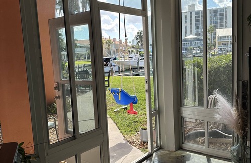 This condo is located on beautiful Island Estates which is 1 mile from the beach and night life. You have a couple restaurants and a grocery store right down the street from you. It’s a small condo building situated right on the water with a private deck and an awning to sit and relax. Both bedrooms have new hurricane sliding doors which gives you a beautiful view from waking up.