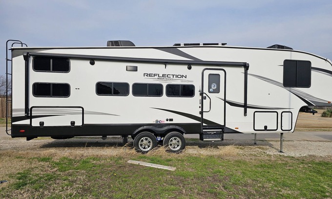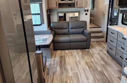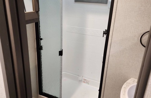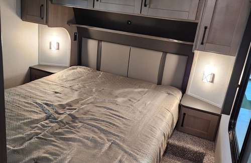 Brand new RV featuring a bunkhouse with a lower full size bed with 2 upper bunks. master has a queen size bed. All bedding and pillows are provided. Kitchen includes a large refrigerator/freezer. The kitchen also includes a single-cup keurig, a toaster, and dishes. The bathroom is spacious with plenty of storage and comes with washcloths/bath towels and hand towels. Outside includes an outdoor shower, griddle, and mini fridge. It is equipped with 2 - 30 lb propane tanks for cooking, hot water, and heater. Disclaimer: Rv is set up in our side/front yard. You are more than welcome to hang out and relax in the yard. We are very seldom home during the day and stay in the house in the evenings. We welcome any pets with the exception of cats.