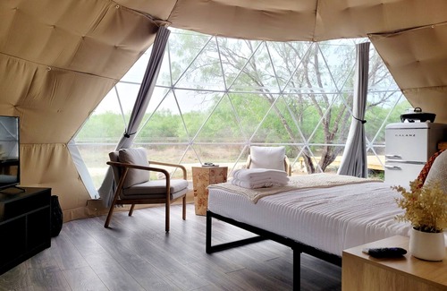 Featuring our Maverick Suite on a beautiful South Texas Property with a view of our large 1 acre pond stocked with large fish that you will be able to feed. If you love watching wildlife there is plenty of it here. Deer, Turkey, Dove, Quail, Javilina, and many other wild animals. Enjoy your private fire Pit, Barbecue pit or take a evening walk on our 1 mile walking Trail which is kept in the native South Texas landscape. Love water? Well take our Peddle boat for a stoll on thel lake.