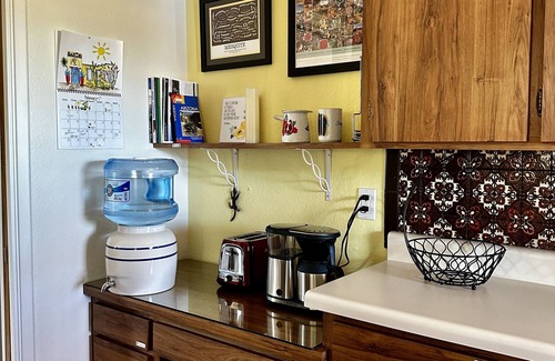 The owners live next door, should you need anything--though don't worry, we know how to respect your privacy! If you choose, we can provide you with purified rainwater to drink and fresh eggs from our chickens. Depending on season and your interest, you can also meet our 50-year old Desert Tortoise Mr. T or our Desert King Snake Sli. And, if you are interested in learning more about rainwater harvesting and water-conscious desert living, we are happy to chat! Just let us know. If you prefer your solitude, we totally understand.