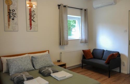 Quiet, green, relaxing place - 3 bedroom villa is a recently renovated villa in Balatonfüred, near Eszterhazy Beach. This property offers access to a patio, free private parking, and free Wifi. Balatonfured Kisfaludy is 1.1 miles away and Tihany Abbey is 5.6 miles from the villa. With direct access to a balcony with inner courtyard views, the air-conditioned villa consists of 3 bedrooms. Offering a terrace with garden views, this villa also has a flat-screen TV, a well-equipped kitchen with a microwave, a toaster, and a fridge, as well as 2 bathrooms with a shower and a hair dryer. The property has an outdoor dining area. Guests can also relax in the garden. Bella Stables and Animal Park is 31 miles from the villa, while Balatonfüred train station is 1.1 miles away.