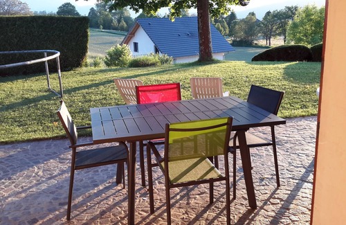 My house welcomes you in a rural and relaxing environment: fields as far as the eye can see and clear view on the surrounding mountains.